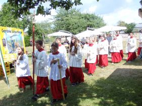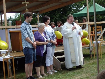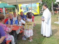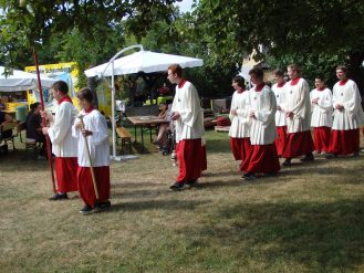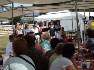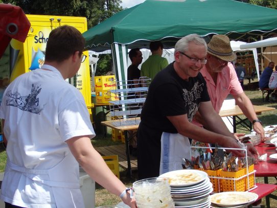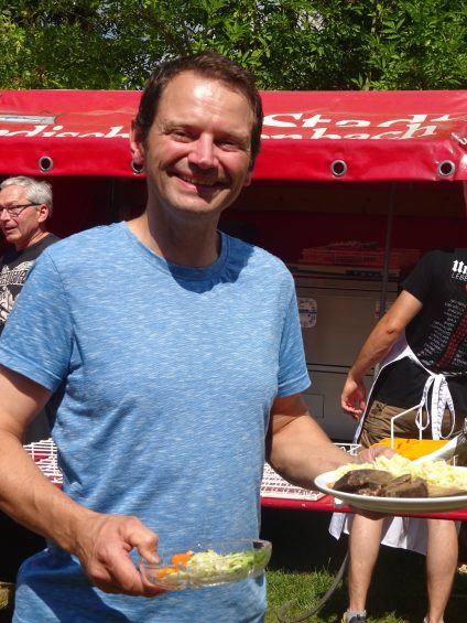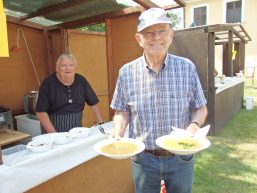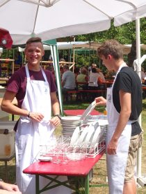 Großen Spaß machte sowohl den freiwilligen und unfreiwilligen Akteuren als auch den Zuschauern der Tanz zu afrikanischer Musik. Pfarrer Edwin animierte zahlreiche Gäste zum Mitmachen und so Mancher entdeckte entfesselt „den Afrikaner in sich“.