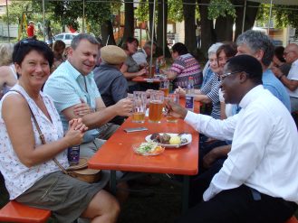 Aber „Fürchten Sie sich nicht“, beruhigte Ozioko in gewohnt fröhlicher Art die Gäste, außer einer sehr scharfen Soße sei alles andere harmlos. Pfarrer Hubert Bartel ging auf die Unterschiede im Wesen ein: die afrikanische Mentalität gehe dahin, dass die Welt nicht auseinander bricht, wenn etwas schief gelaufen ist, in Deutschland sei man pünktlich und korrekt, aber nicht so locker und flexibel.