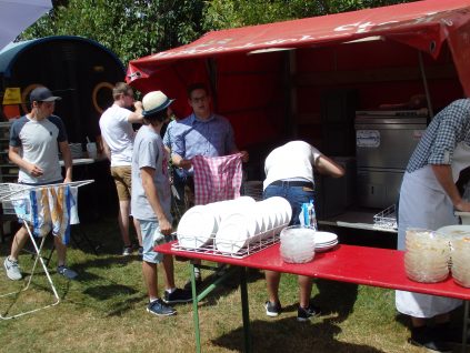 Auf absolute Begeisterung stieß das Speisenangebot aus der afrikanischen Küche: das Team hatte als Vorspeise Süßkartoffel mit Thunfisch und Käse gezaubert; weiter gab es Rinder-Buschgeheimnis, afrikanisch gewürztes Hähnchen, gebratene Kochbananen, Yam, Erdnuss-Soße, zweierlei Reis sowie die schon erwähnte scharfe Soße „Mamas Shito“, die so manchem mutigen Verkoster die Tränen in die Augen trieb.